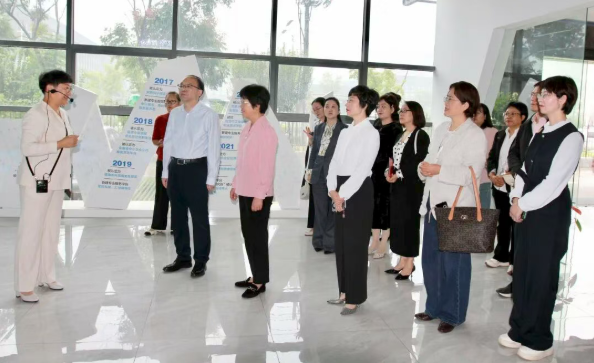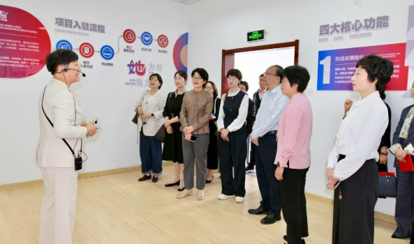 活动结束后,金业科技创业产业园董事长方雯带领岳主席一行参观了金业产业园展厅和蚌埠市巾帼科技创新示范服务平台,向领导们详细汇报了金业产业园多年来在服务女性科技创新方面做出的成绩,以及在运营巾帼科技创新示范服务平台上提供的服务内容和未来的发展规划,受到了领导们的高度肯定。
