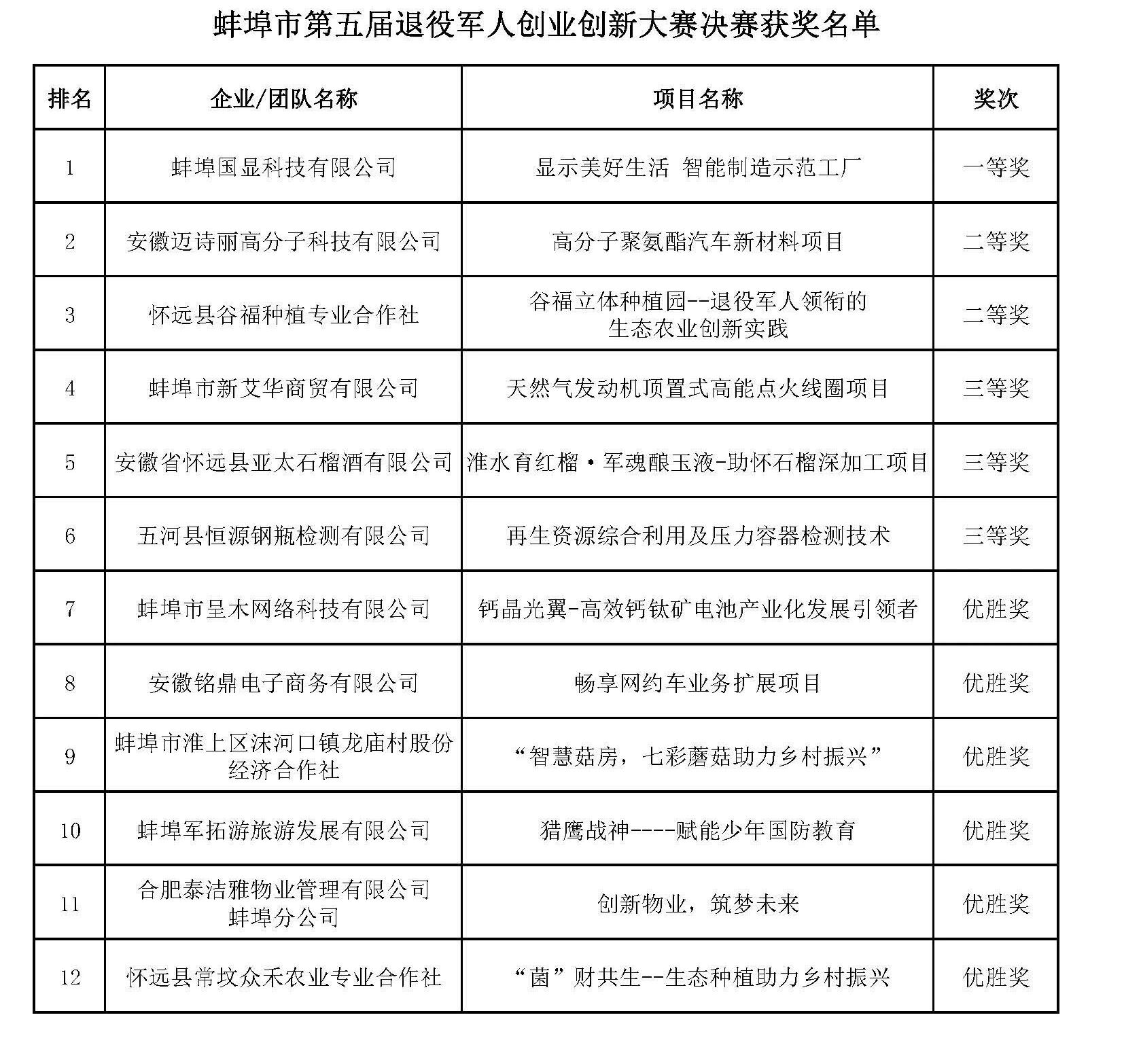 2025年8月20日下午,由蚌埠市退役军人事务局主办,蚌埠市江淮创业研究院承办的蚌埠市第五届退役军人创业创新大赛暨颁奖仪式,在江淮创业研究院融媒体会议厅举行。