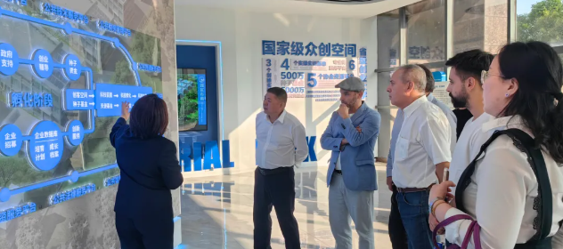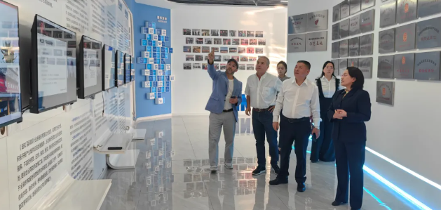 金业产业园总经理徐翀带领外宾参观了园区展厅,介绍了金业产业园的发展历程、服务模式、服务业绩等。阿尔贝托·贝尔尼斯一行对金业产业园搭建的N+1服务平台表示赞赏。