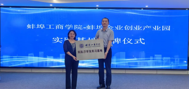 会上,金业产业园与蚌埠工商学院签订了大学生实践教学与就业实习基地建设协议书,江锋副校长为金业产业园授予蚌埠工商学院实践教学及学习基地牌匾。