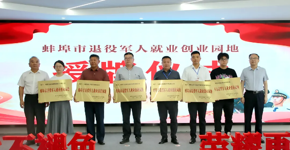 活动现场,汪若怀和伍旭峰还为六家企业授予蚌埠市退役军人就业创业园地牌匾。