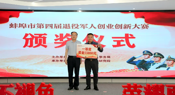 6月26日下午,由蚌埠市退役军人事务局主办,蚌埠市江淮创业研究院承办的蚌埠市第四届退役军人创业创新大赛暨颁奖仪式,在江淮创业研究院融媒体会议厅举行。