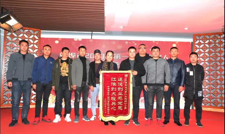 五河县退役军人培训团队领队张茂飞代表全体学员向方雯董事长赠送锦旗,表达对江淮创大的感谢。