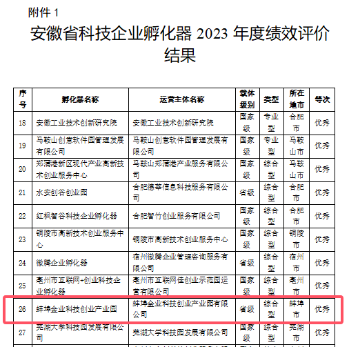 连续三年双优秀!蚌埠金业科技获安徽省科技企业孵化器和众创空间2023年度绩效评价双优秀!