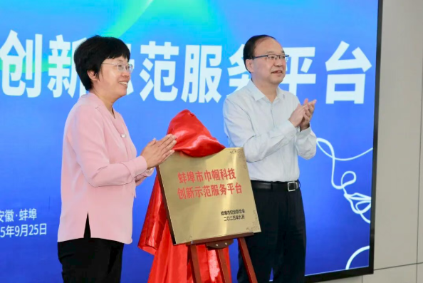 9月25日,由市妇联、市科技局、市科协主办的“科技巾帼・智创未来”女生爱科学主题活动暨蚌埠市巾帼科技创新示范服务平台揭牌仪式在蚌埠金业科技创业产业园举行,省妇联副主席岳军芝、市人大常委会副主任汪若怀为平台揭牌。出席活动的还有省妇联发展部部长黄承华,市妇联党组书记、主席童浩平。