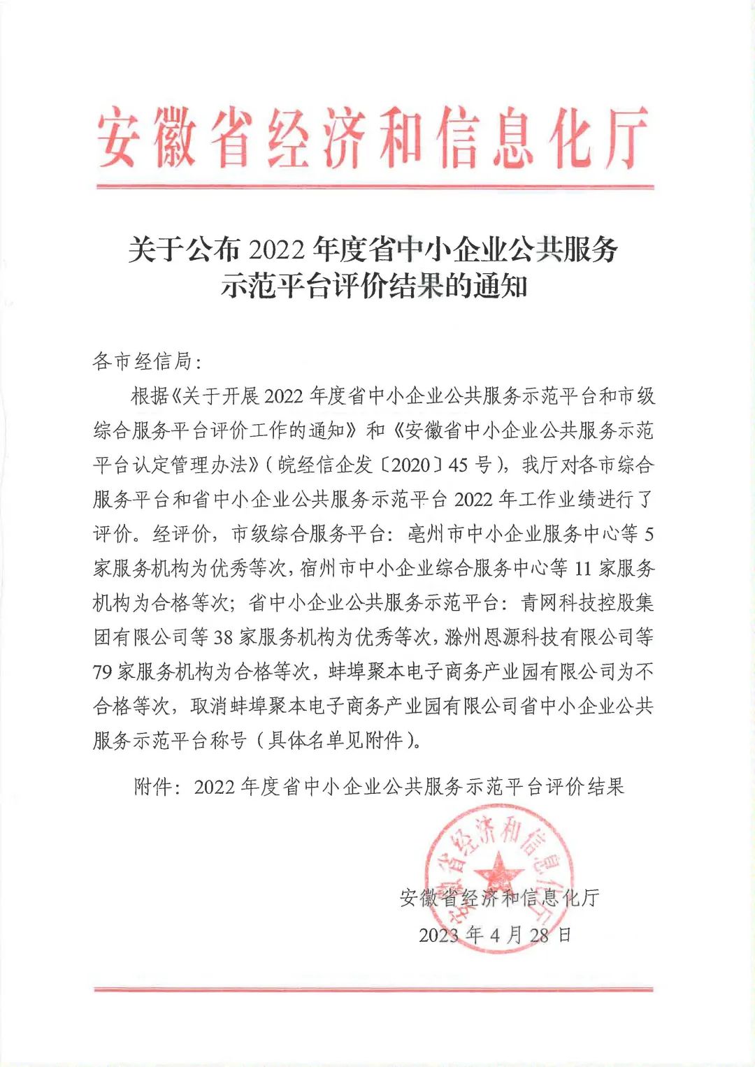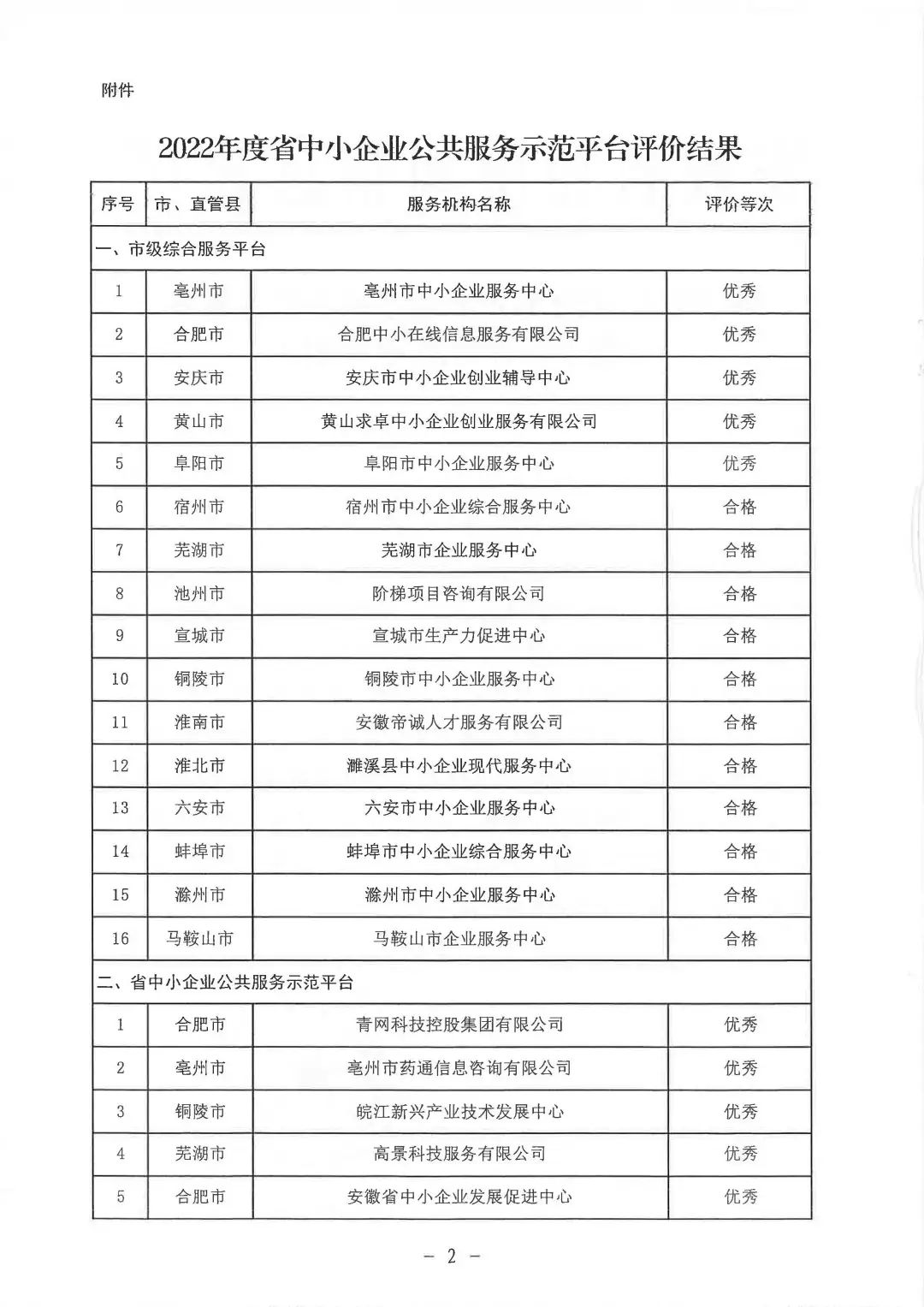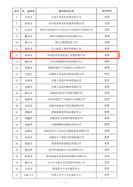 近日,安徽省经信厅发布了2022年度省级中小企业公共服务示范平台评价结果,蚌埠金业科技创业产业园喜获“优秀”。