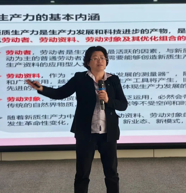 欧木兰联系工作实际,应用生动的案例,深入浅出地诠释新质生产力的核心要义和基本内涵,并结合国显科技有限公司具体情况,讲述了坚持科技创新、打造核心竞争优势、拉通显示产业链一体化促成企业高质量发展的做法及思考。欧木兰的演讲受到了参会人员的热烈好评,她坚韧的创新实干精神,也让大家深受感动。