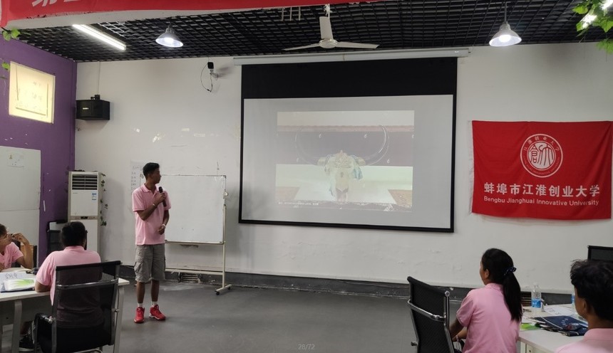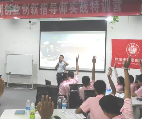 邀请国家二级职业指导师,安徽省筑梦创业导师姚杰,通过“将你作为创业者来评价”“为自己建立一个好的企业构思”“评估你的市场”“企业的人员组织”“选择一种企业的法律形态”“法律环境和你的责任”“预测启动资金需求”“制定利润计划”“判断你的企业能否生存”“开办你的企业”SYB十大课程的传授,讲解商业计划书的编写,培养项目路演的能力,帮助学员提升实践能力、创新能力、就业能力和创业能力,使学员对用项目路演推介产品的方式有了直观印象。学员经过培训后,不仅可以站在大屏幕前介绍自己的产品,还学会利用新媒体如抖音、小视频等方式演示自己的项目。