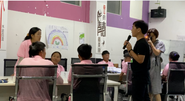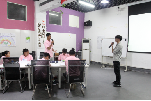 姚杰老师在课上用2-3分钟时间,要求每个模拟项目组的董事长自查、汇报整个小组完成商业计划书的情况,引导学员大胆地说出计划书的优点和缺点,展示自己的亮点,让学员在热烈的掌声中充分肯定自我,增强自信心。