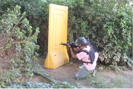 在江淮创大孵化项目军拓研学教育基地,指挥学员们进行真人CS对抗活动。锻炼学员们展示出身体灵活性、观察力,增强参与激烈竞争的勇气,激发了学员们对国防教育活动的兴趣与热情,提升了同学们的责任与担当意识,达到了弘扬爱国精神、提高国防意识、挥洒热血青春的目的。