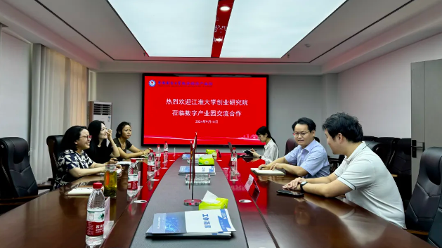 9月10日上午,江淮创业研究院执行院长张柳、副院长朱琰,金业产业园董事长助理李翠绿等一行前往安徽财经大学数字经济产业园参观交流。安财数字经济产业园副总经理雷松林接待张柳一行。